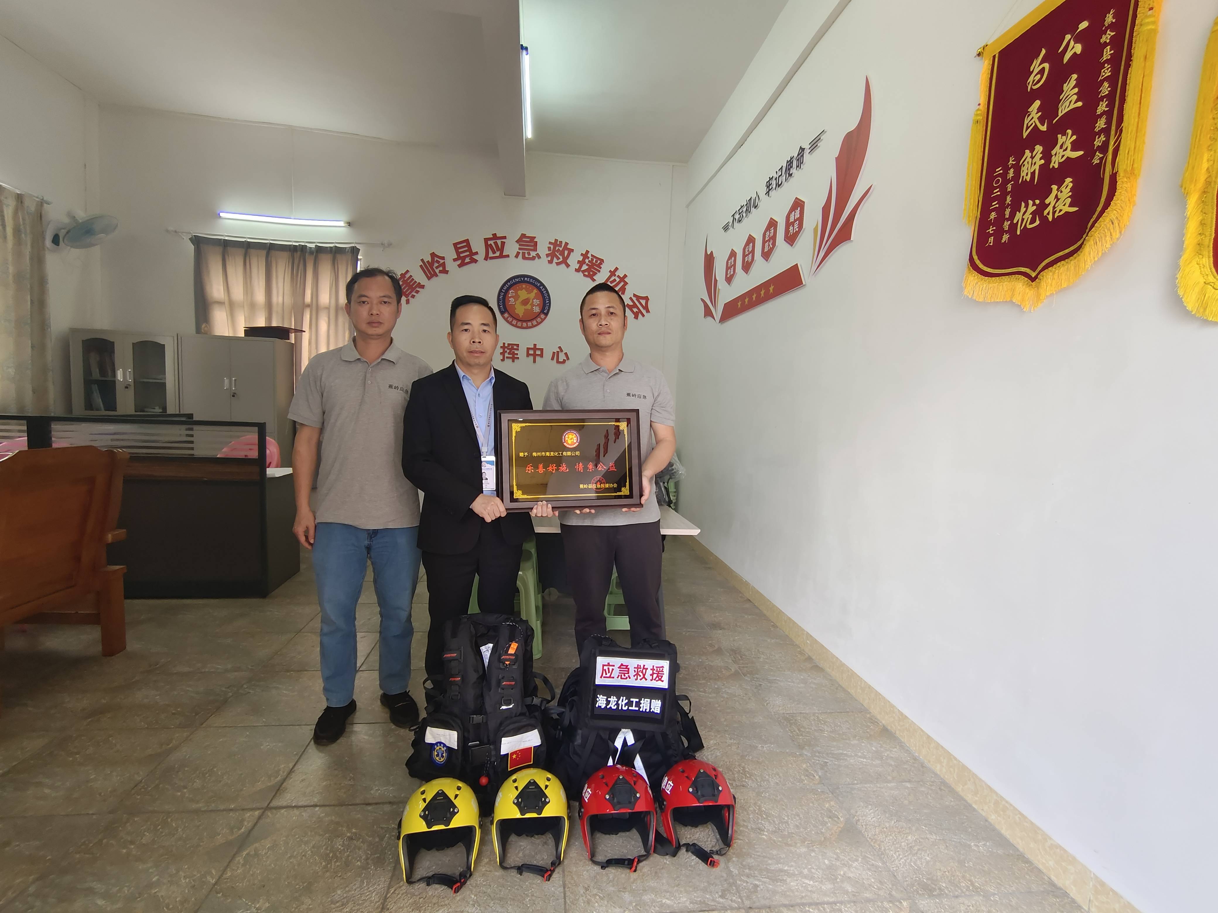 梅州市海龍化工有限公司向蕉嶺縣應(yīng)急救援協(xié)會捐贈一批應(yīng)急救援裝備