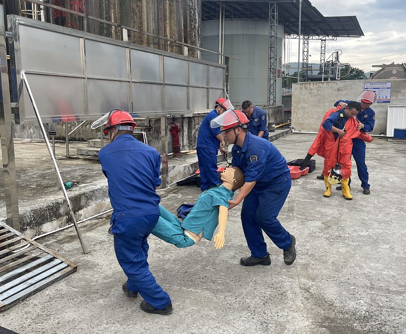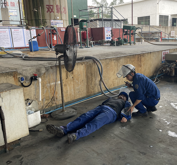 為進一步提高員工安全意識,增強人員觸電、被化學品灼傷及受限空間的應急處置和滅火器實操的能力,結(jié)合公司實際,2024年9月26日下午,海龍化工在化工廠區(qū)進行安全生產(chǎn)應急演練。