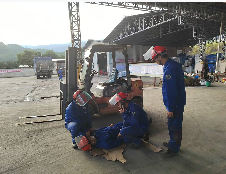 叉車司機王根立即停止作業(yè),并大喊:“撞人了,撞人了”,周邊同事聽到后,迅速過來幫助受傷人員躺平,并上報車間主任,車間主任接報后,立即組織救援人員趕赴現(xiàn)場,查看受傷人員傷勢情況,查看到傷勢比較嚴重,立即組織人員進行簡單包扎處理,簡單處理后,使用擔(dān)架抬傷員到公司車輛并送到醫(yī)院就診。