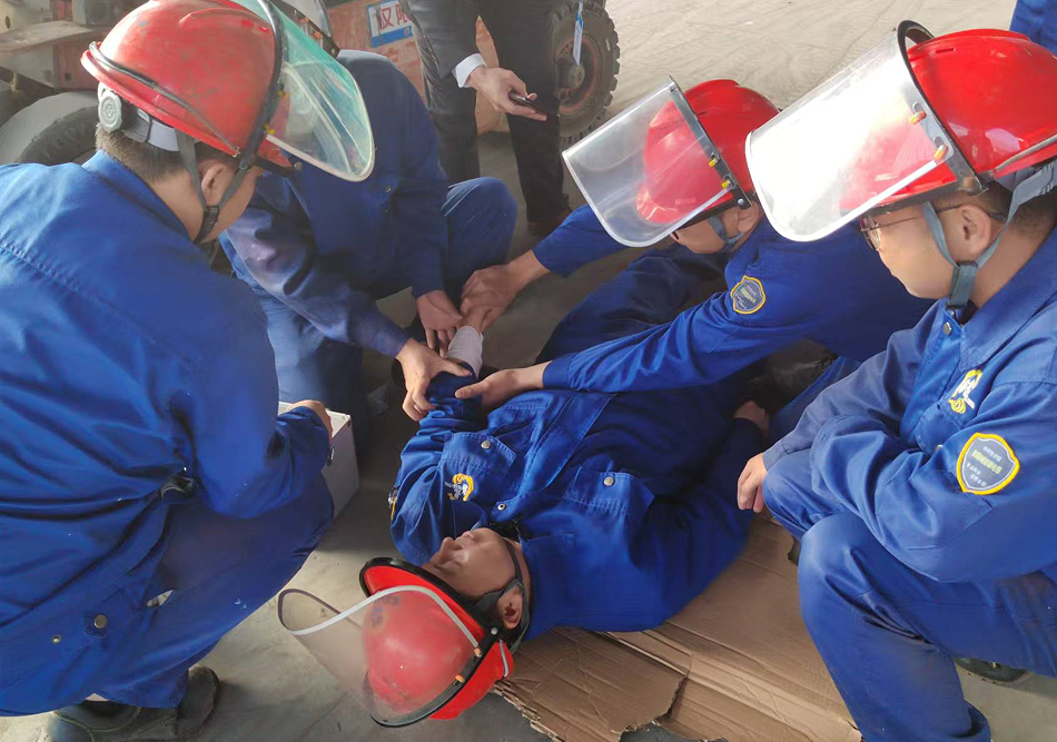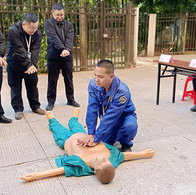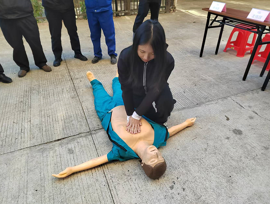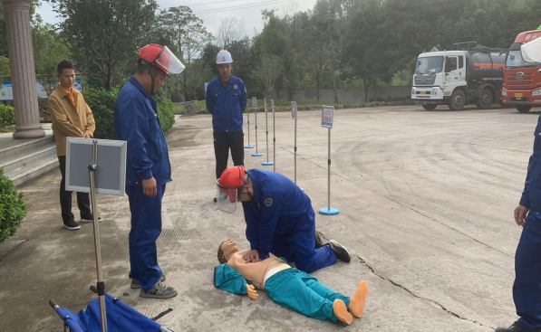 安環(huán)部李偉新經(jīng)理講解心肺復(fù)蘇的基本操作步驟和注意事項,大家都認真學(xué)習(xí)、操作。
