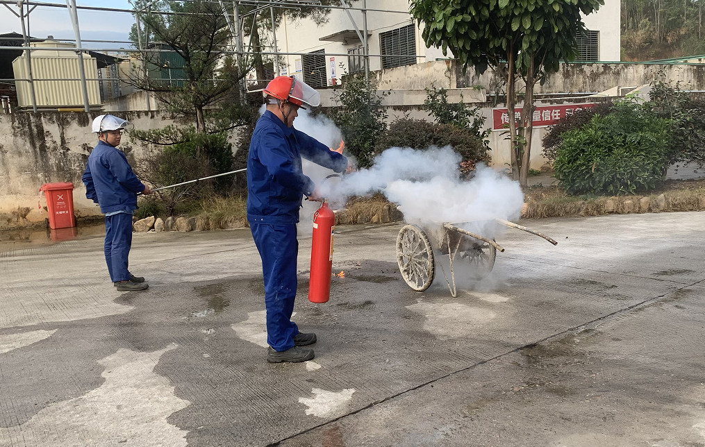 由安環(huán)部李偉新經(jīng)理進行滅火器知識講解、使用方法及注意事項。最后安排每人依次進行滅火器滅火操作。