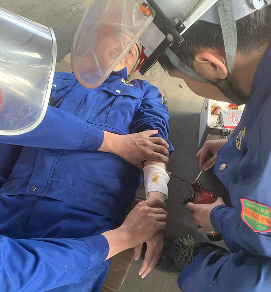醫(yī)療救護組對傷員進行現(xiàn)場急救。